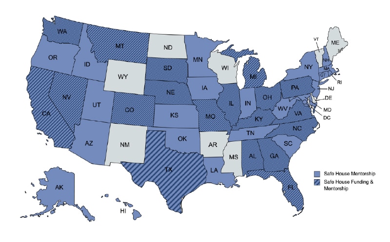 Safe House Project supports over 479 safe homes across the U.S., providing thousands of safe nights and comprehensive care annually.